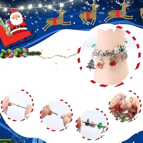 Božićni adventski kalendar koji uključuje 22 privjeska i 2 narukvice za izradu dvije šarmantne narukvice.
