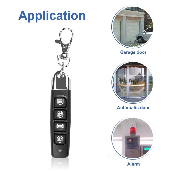 - Kopiranje: U lijevu ruku uzmite originalni daljinski upravljač, u desnu ruku naš duplikator i držite ih što bliže jedan drugome; pritisnite prve gumbe na oba daljinska upravljača istovremeno; za oko 2 sekunde LED lampica će brzo zatreperiti 2 puta; nakon jedne sekunde indikatorska lampica nastavlja treperiti i tada pustite prste; zatim pritisnite tipku nakon uspješnog uparivanja, lampica ostaje upaljena, što znači da je kod prve tipke s originalnog upravljača kopiran na drugi; ista metoda se koristi redom za drugu tipku, treću tipku… Ako je kopiranje uspješno, funkcija daljinskog upravljača ista je kao i kod originalnog.