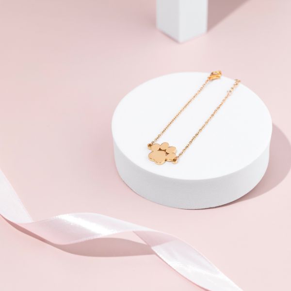 Predstavljamo našu Paw narukvicu u sjajnoj zlatnoj boji, posvetu bezuvjetnoj ljubavi naših krznenih prijatelja. Ova šarmantna narukvica ima nježan, ali zamršeno detaljan privjesak za šape, slaveći vezu između ljudi i životinja. Izrađen s pažnjom i preciznošću, dodaje dašak topline i ljubavi Vašem stilu. Bilo da se nosi kao podsjetnik na vašeg voljenog ljubimca ili kao iskaz suosjećanja prema životinjama, naša narukvica Paw u zlatnoj boji odiše elegancijom i sentimentalnošću, što je čini savršenim dodatkom za svakog ljubitelja životinja.