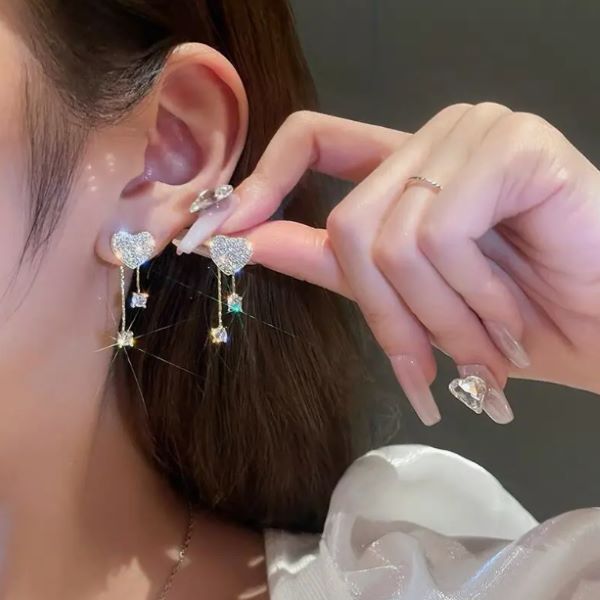 💫 Asimetrična elegancija: Prihvatite privlačnost asimetrije s ovim naušnicama s resicama u obliku srca i prekrasno ukrašenim detaljima od cirkona.