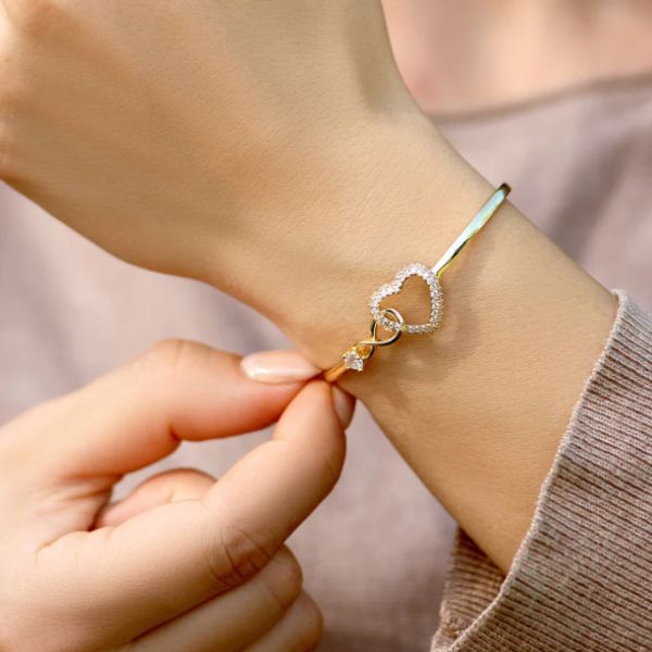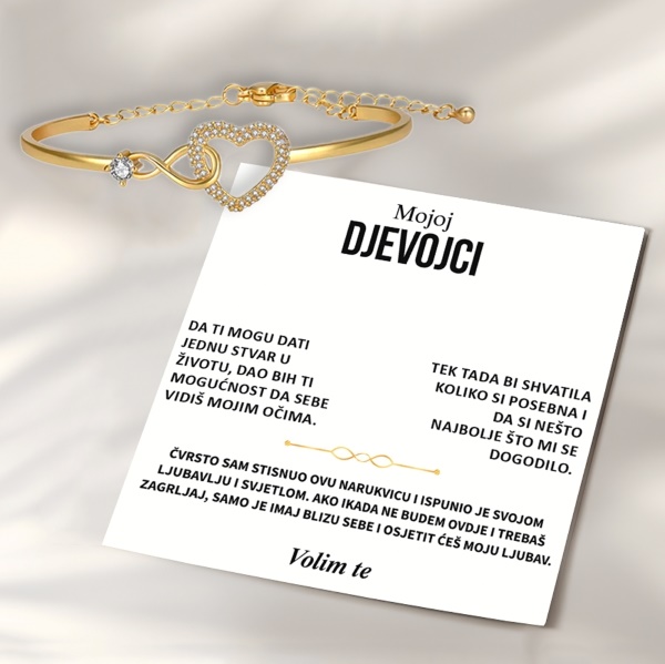 Narukvica kombinira simbol beskonačnosti s motivom srca, koji predstavlja vječnu ljubav i neraskidivu povezanost.