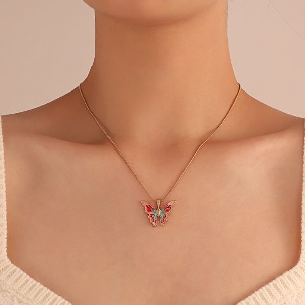 Podignite svoj stil uz našu živahnu 🦋 šarenu ogrlicu s privjeskom u obliku leptira, utjelovljenje stila i ljepote. Ovaj izuzetan komad ima inovativan proces kapanja ulja, dajući mu zadivljujući sjaj boja koji je jednako privlačan koliko i moderan. 💖