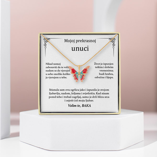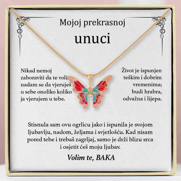 Jedinstveni dizajn: Naša ogrlica ima šareni privjesak u obliku leptira koji je i moderan i lijep. Proces kapanja ulja daje mu spektar živih boja, čineći ga pravim umjetničkim djelom. 🌈🖌️
